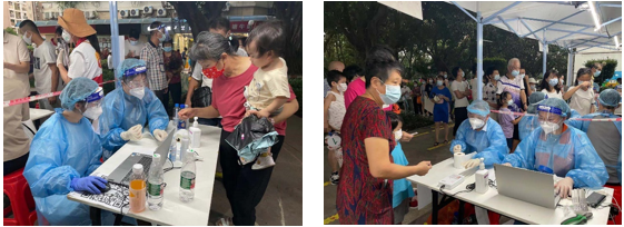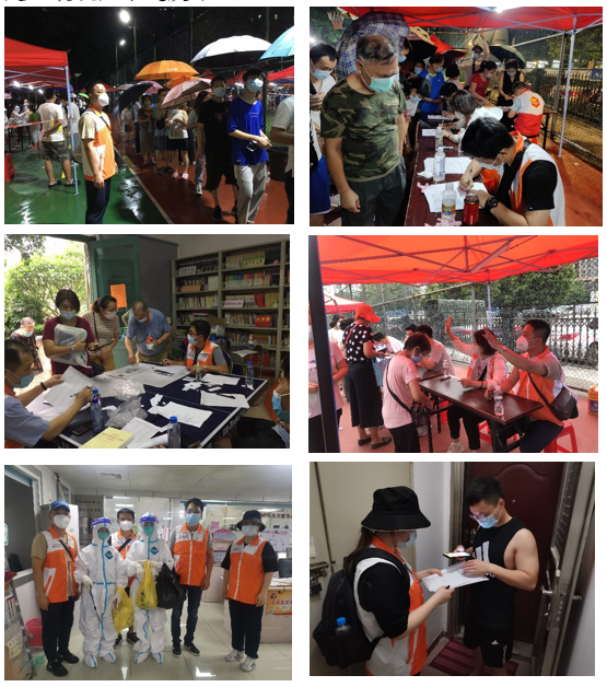 530日中午集结队伍到晚上10点多结束,我亲历并亲眼见证了核酸检测点的所有工作人员义无反顾、风雨无阻的坚守。在烈日酷暑和风雨交加之下,我们的队员坚持紧张有序而又耐心细致的站立引导,看着漫长的队伍一刻也不敢歇息。社区居民自动自觉参加检测,排队井然有序,许多居民面对工作人员都会说声“你们辛苦了”,更多的社区一线工作人员、医护人员日夜奋战在岗位上……这些场景无不令人动容。