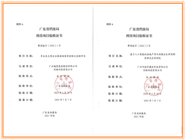 近日,集团总部《多业态大型企业集团档案管控模式创新研究》项目和永乐国际·F66地产《基于人工智能的房地产项目档案全生命周期管理及应用研究》项目通过省档案科技项目验收,两个项目获得专家组充分肯定,成为省档案局科技项目管理办法修订后首批通过科技验收的项目。